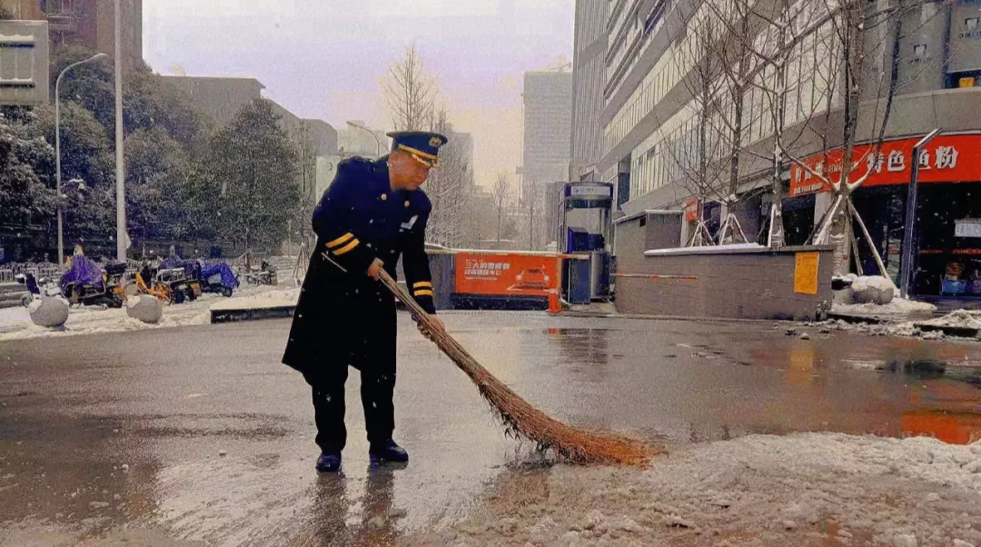 为保障空港国际城售楼处、停车场道路畅通,华远智慧物业长沙分公司及时启动扫雪防冻应急预案,全体员工不畏严寒快速组织清雪,积极奔赴自己的“战场”,有条不紊的打扫路面积雪,清理薄冰。